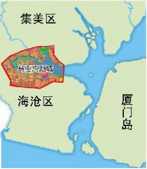 位于厦门西北部,集美西部,海沧中东部,天竺山与蔡尖尾山之间,东至新阳大桥、西至孚莲路,南至翁角路、北至海翔大道,是厦门连接漳州的重要门户。规划用地总面积约37平方公里,其中水域面积约8平方公里,规划人口37万。功能定位为“一带一路”的战略支撑点,海峡两岸合作的地区性服务基地,产城融合的国际化生态海湾新城。
