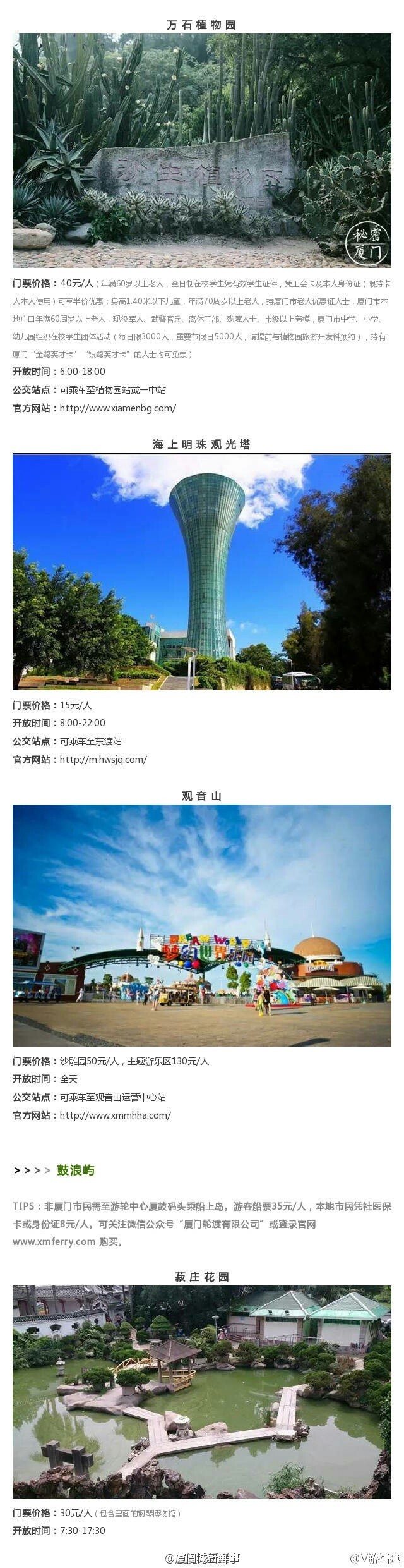 【超全!厦门31个景点门票信息[推荐]】包含交通、门票和开放时间,思明区、湖里区、海沧区、集美区、鼓浪屿……全到没有盆友!国庆假期快到了,转给来厦门旅游的朋友~[奥特曼]
